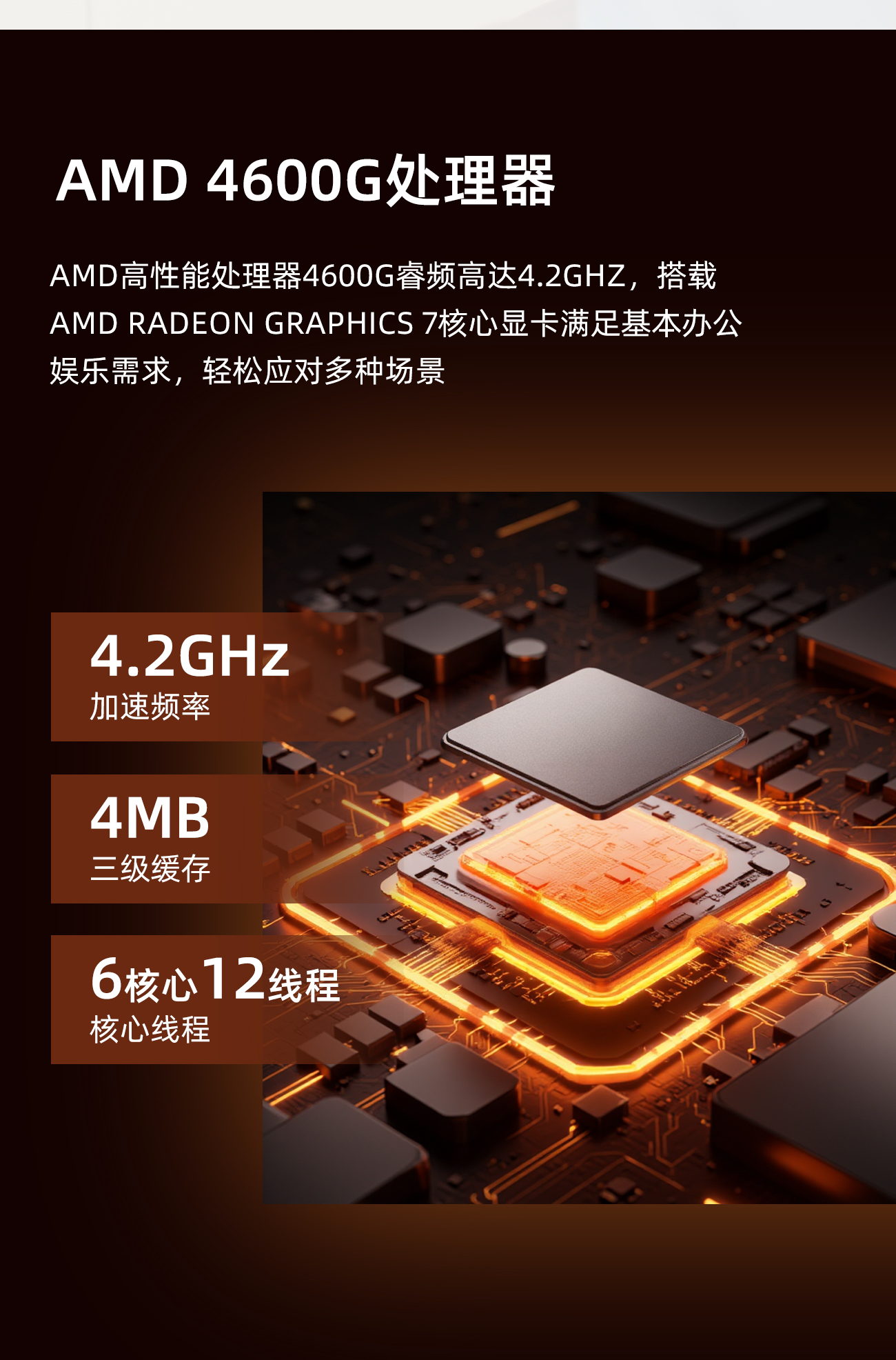 AMD 4600G 六核十二线程 主频3.7GHz,睿频4.2GHz |