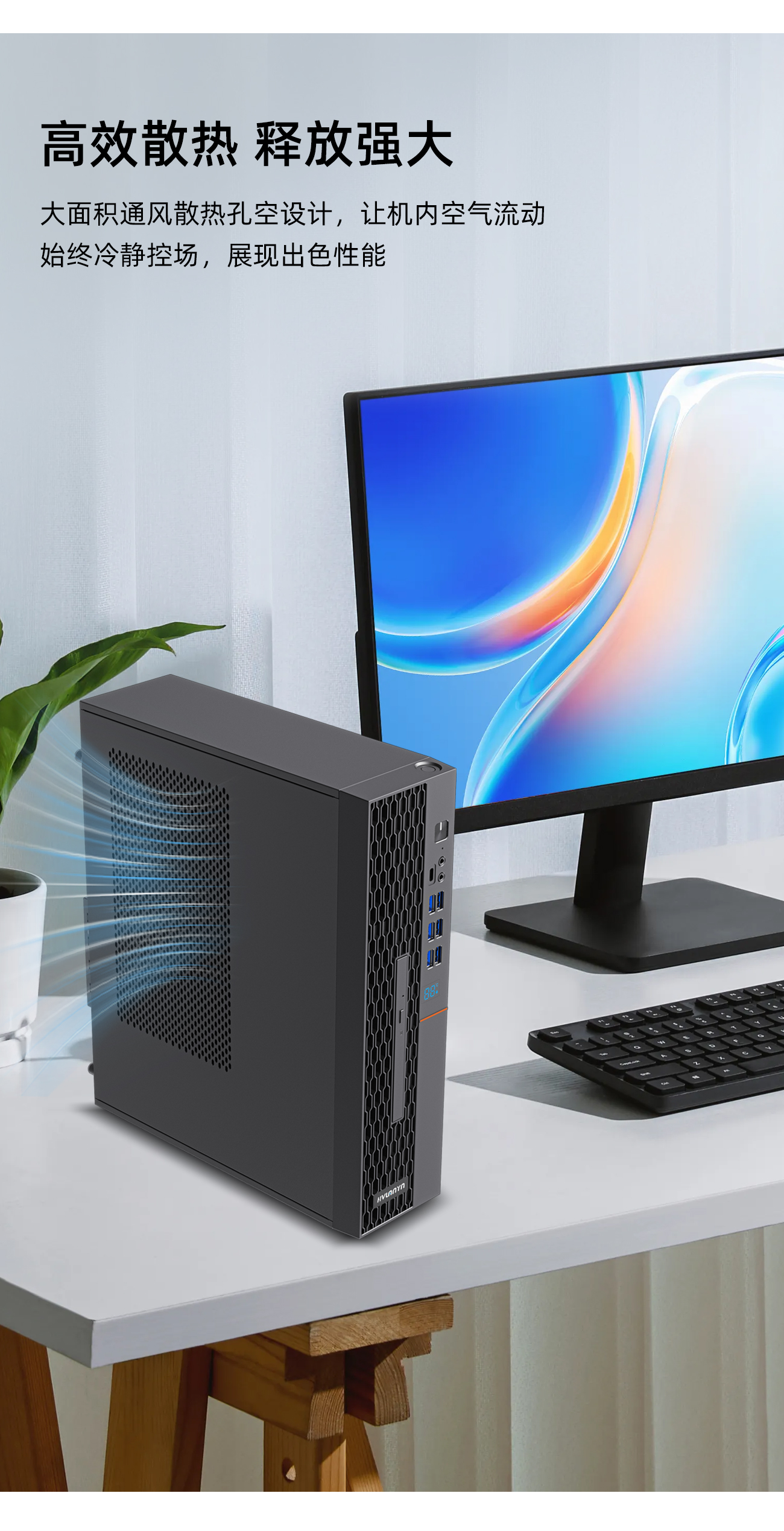 D8002是本公司推出的一款台式机电脑,8L容量纤薄机身,顶置指纹解锁触摸按钮,前置6个USB+1个Type-C接口,还有实时温度监测面板、光驱位;材质SECC 0.5MM-0.6MM钣金,侧面及上面板采用黑色半烤工艺,其他面SECC本色,兼容ITX、M-ATX等主板。