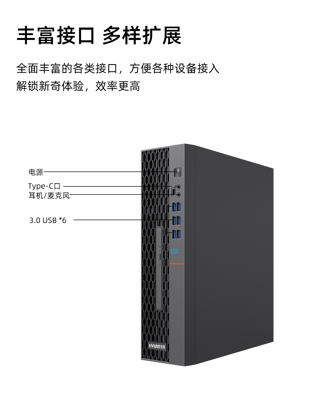 前置:USB3.0*6;Type-C*1(数据功能);二合一音频*1;MIC*1